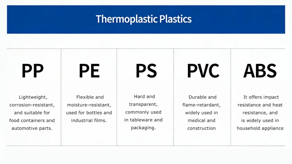 Materials suitable for injection moulding include ABS plastic, PP soft plastic, PE , PC , PS , PA , POM and others.