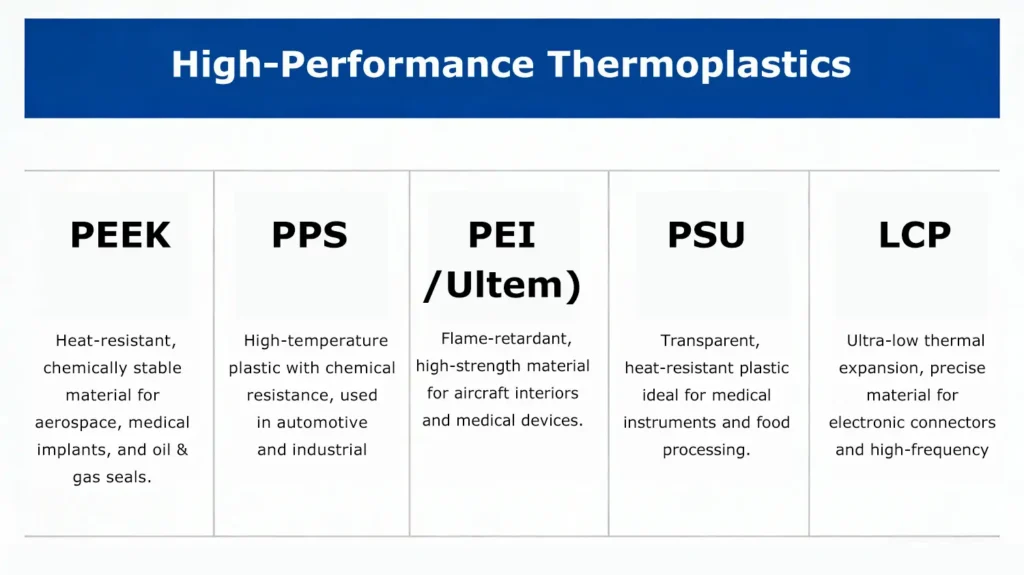 Exceptional heat resistance (up to 250°C), chemical stability, and biocompatibility make it ideal for aerospace components, medical implants, and oil & gas seals.