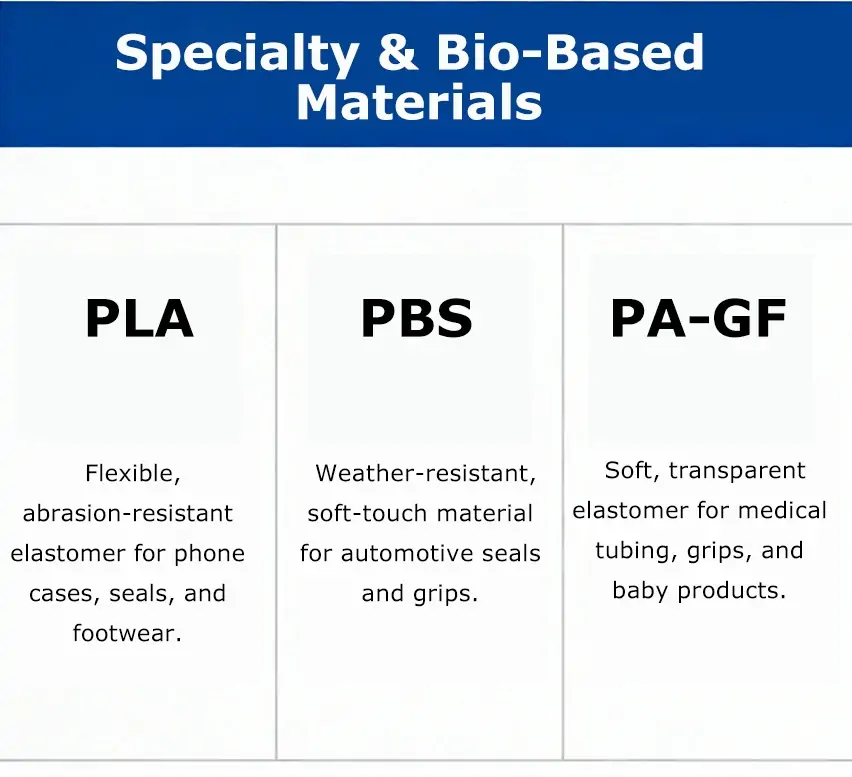 Injection moulding materials vary widely, enabling precise selection based on performance, durability, and application requirements.