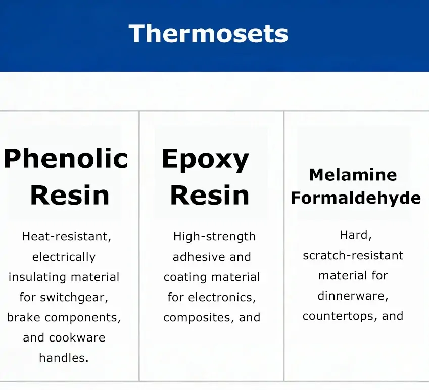 Heat-resistant, electrically insulating material that cures irreversibly, used in electrical switchgear, automotive brake components, and cookware handles.