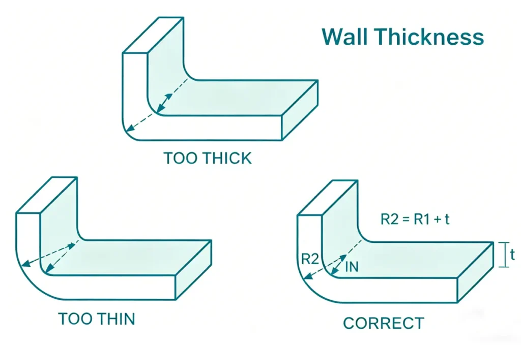 Designers typically aim to maintain consistent wall thickness while using ribs or structural features to reinforce strength where needed.