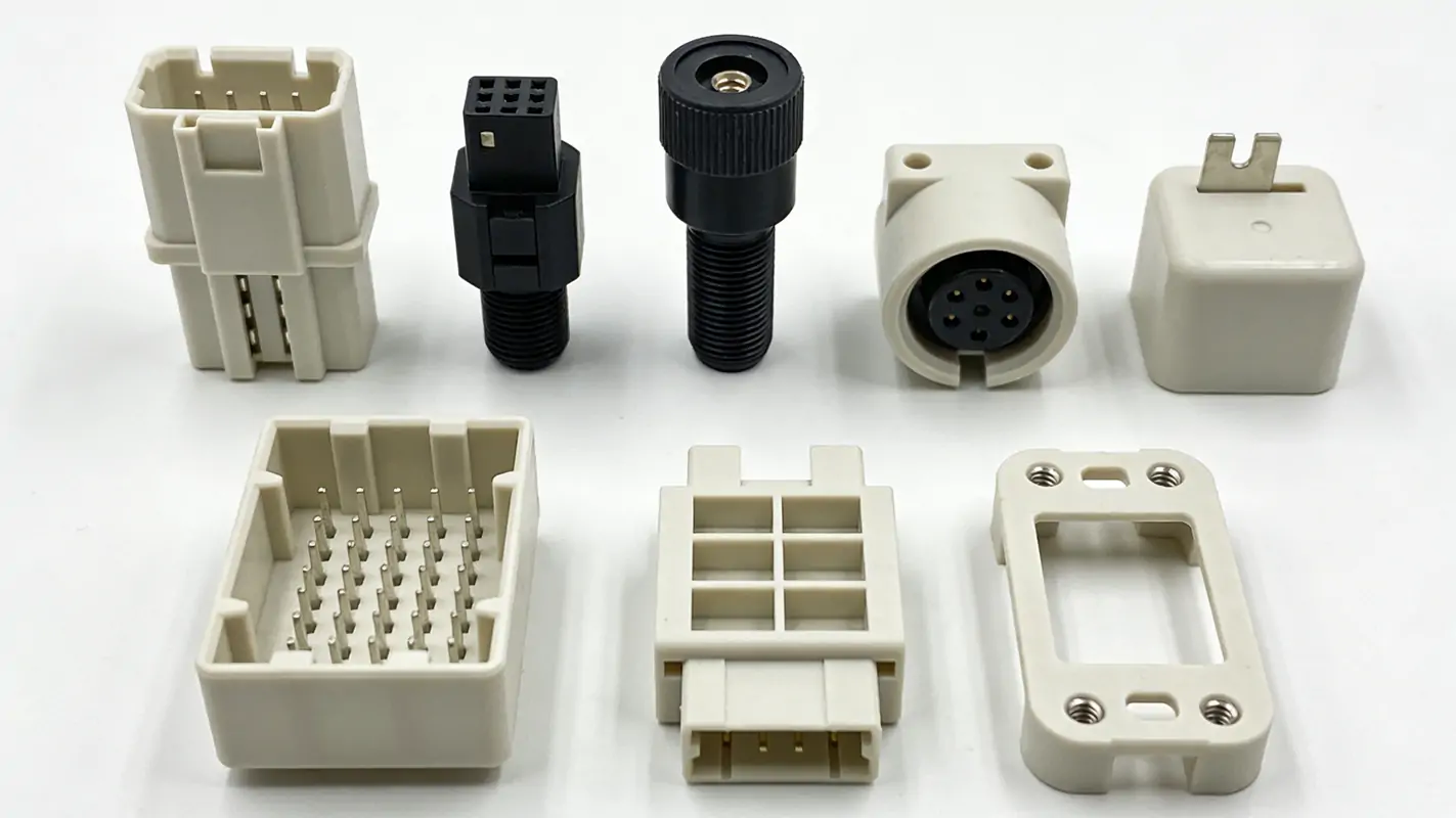 Commonly found in connectors, sensor housings, microstructures, and electronic component supports.