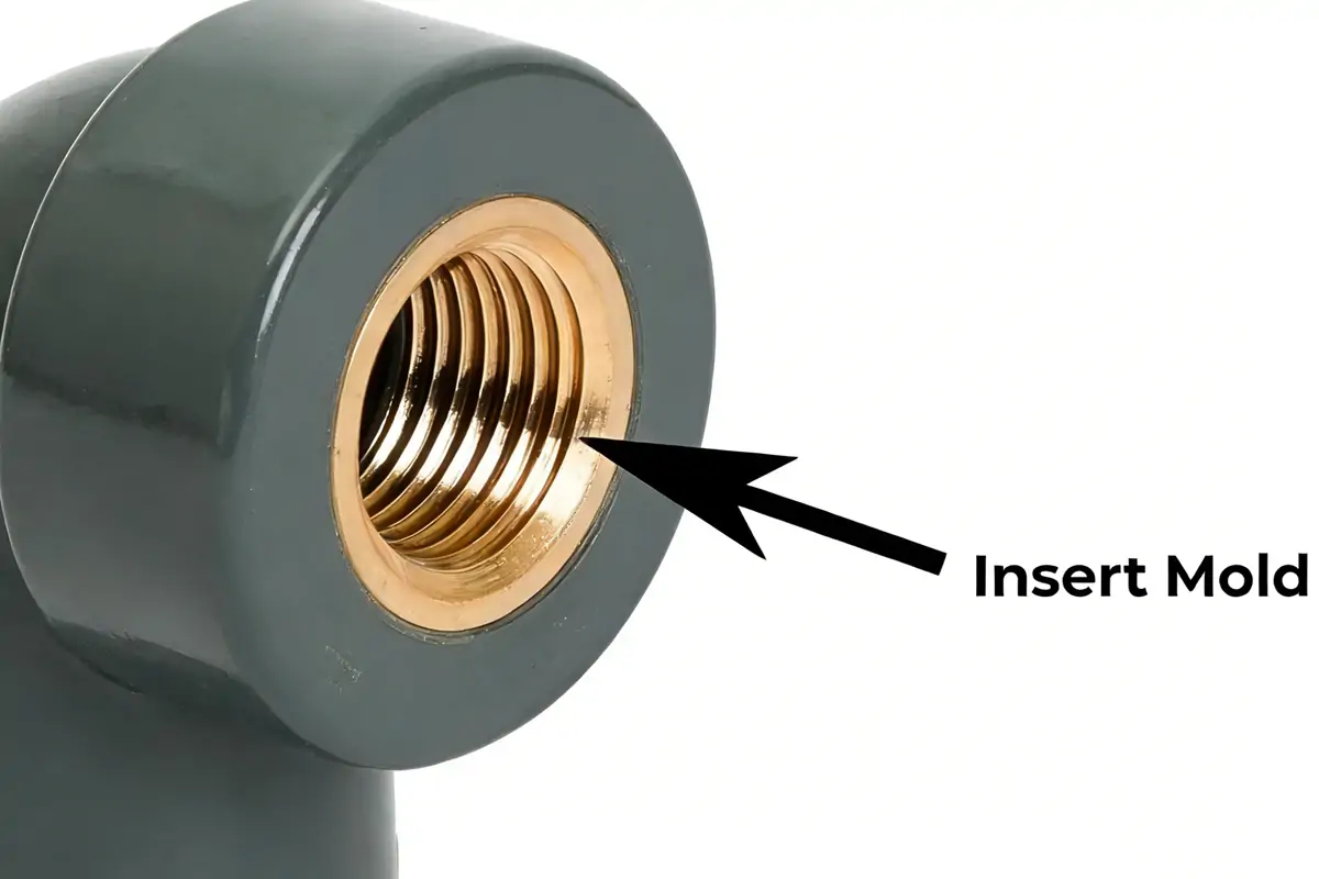 Insert molding embeds metal or other materials into plastic parts, enhancing strength and functional integration.